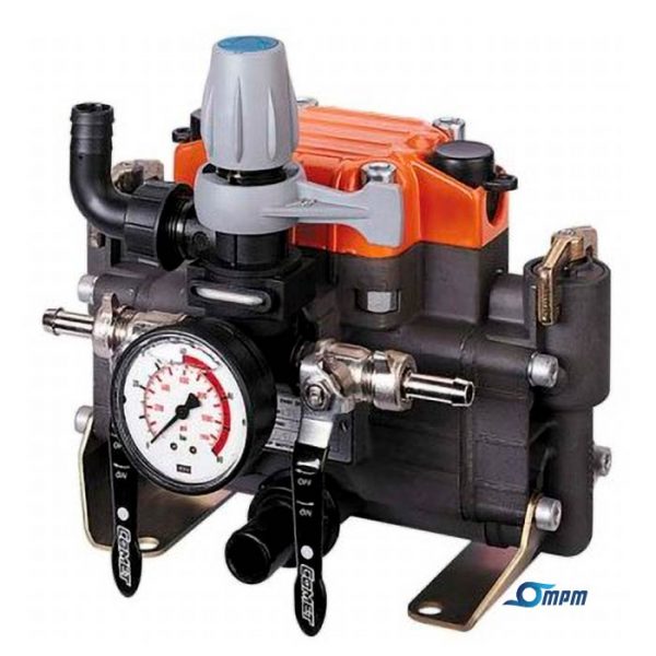 - Bomba de membranas con dos cabezas, fabricada en aluminio anodizado.